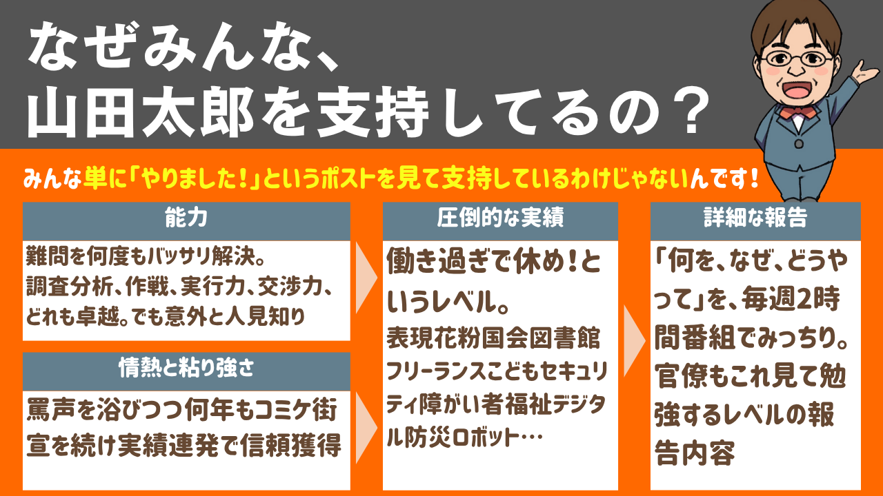 山田太郎議員が自分の意見を通して数多くの実績を残していることからも分かると思います。