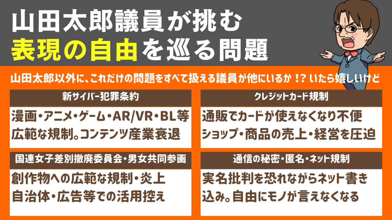 と考えるのであれば、確かに山田太郎議員はその要求に応えてくれる議員ではないかもしれません。